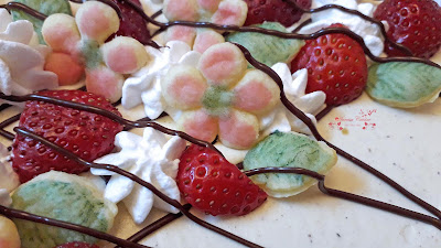 ornamentele din aluat, pictate, căpșuni și perluțe. Mai
